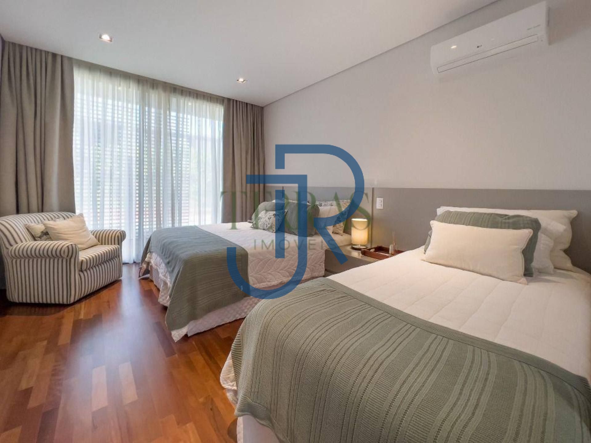 Casa térrea com 5 suítes, lavabo, home theater, cozinha, espaço gourmet com chopeira, piscina aquecida, suíte de funcionários, sala de musica, toda climatizada com ambientes integrados, mobiliada e decorada com Maria Pia Casa e Breton.